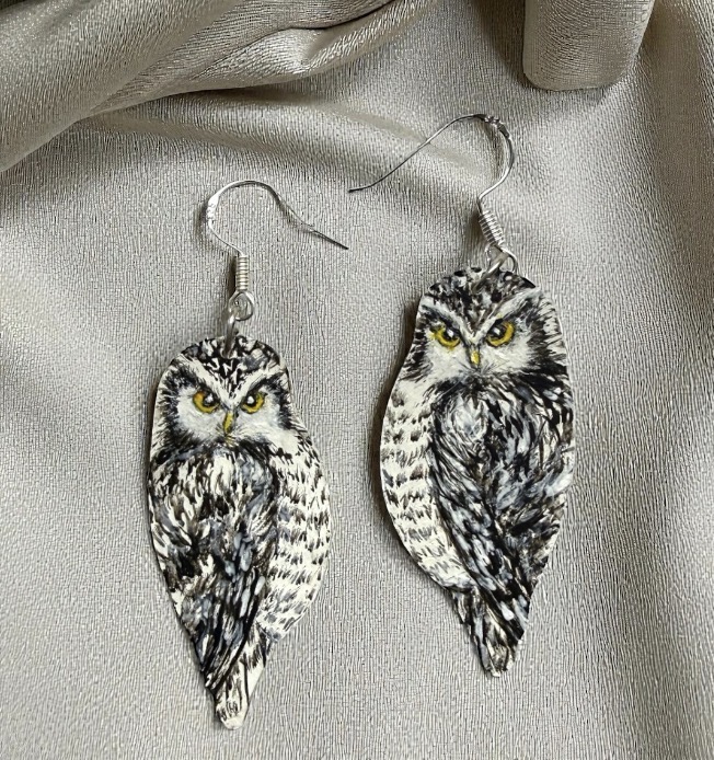 Realistlikud linnud on 4 cm pikkused. Käsitsi maalitud peene pintsliga ja lakitud. Konksud hõbe 925